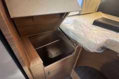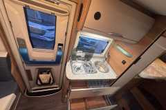 Siedzenia w kształcie litery L z regulowanym stołemŁóżko opuszczane nad kabiną (185x150 cm)Łóżko tylne pojedyncze (201x85 cm oraz 201x77 cm, możliwość przekształcenia w łóżko małżeńskie)Miejsca sypialne: 5