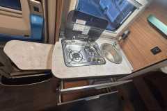 Kuchnia: 2-palnikowa kuchenka gazowa, zlew z pokrywą, lodówka 142 l (AES)Łazienka: Prysznic, obrotowa toaleta kasetowa