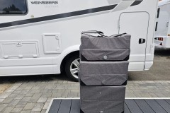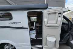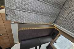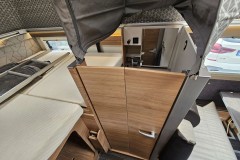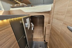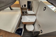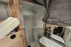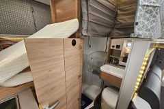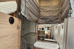 Kuchnia: wyposażona w kuchenkę dwupalnikową z zapłonem elektrycznym, lodówkę kompresorową o pojemności 90 litrów z trybem nocnym i cichym, oraz szuflady kuchenne z funkcją cichego domykuŁazienka: obrotowa toaleta kasetowa Thetford, prysznic z regulowaną wysokością kabiny, wysokiej jakości osprzęt, składany wieszak na ubrania