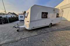 Długość całkowita z dyszlem: 729 cmDługość nadbudowy wewnątrz: 610 cmSzerokość zewn./wewn.: 220 / 204 cmWysokość zewn./wewn.: 260 / 196 cmObwód przedsionka: 997 cmMasa własna: 1185 kgDopuszczalna masa całkowita: 1500 KGDopuszczalna ładowność: 215/315/415/515/615 kgRozmiar kół: 5,5J x 14 H2Ilość miejsc do spania: 3 (maks. 5)Ilość okien otwieranych: 4Wymiary drzwi: 57 x 172 cmGrubość dachu/ścian/podłogi: 31/31/38 cmŁóżka: Przód - 200 x 156 cm, Tył - 199 x 122/108 cmZbiornik wody czystej: 45 lLodówka: 150 lGniazda 230 V: 5